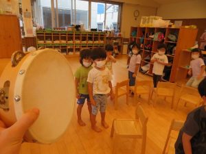 今回の椅子取りゲームでは、ピアノやCDを使わず、