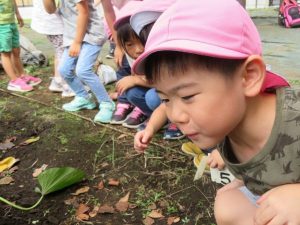 大きいダンゴムシや赤ちゃんダンゴムシ等、見つけたダンゴムシを見せ合いました。