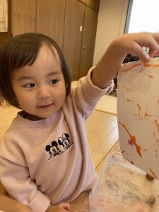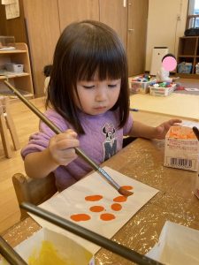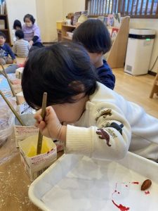 色を混ぜたり、一色の色を紙にのせたりと様々な姿が見られました。