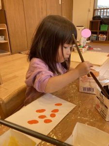 色を混ぜたり、一色の色を紙にのせたりと様々な姿が見られました。