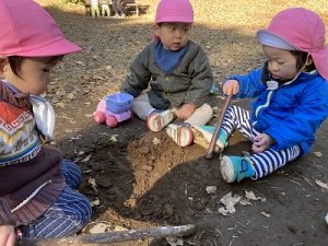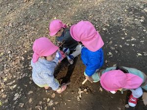 僕も私もと、真似っこして地面を一生懸命ほじほじしていました。
