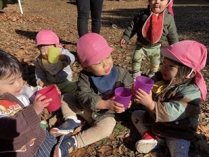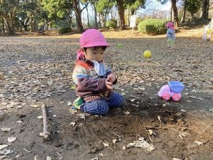 いつものように公園で落ち葉や木の枝をたくさん見つけた子ども達!