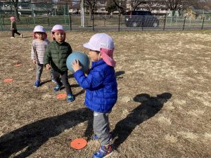 ボールを当てられないように、一生懸命逃げている子どもたち