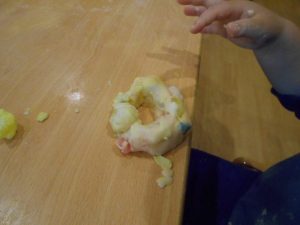 小麦粉ねんどが大好きなわかば組(2歳児)のみんな
