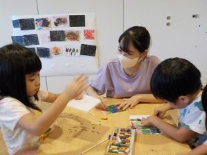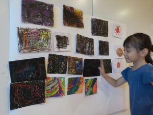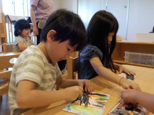 クレヨンのスクラッチアートを教えてくれた様子です。
