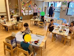 登園時から「今日のパーティー楽しみ」と話をしていた子ども達。
