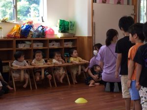 運動会に向けて毎日お遊戯や競技を楽しんでいる幼児さん。