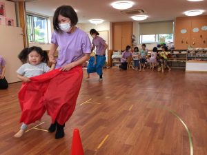 親子競技も保護者の代わりに保育者が猛ダッシュ!