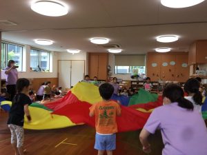 運動会に向けて毎日お遊戯や競技を楽しんでいる幼児さん。