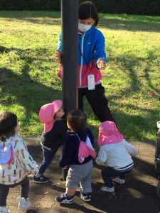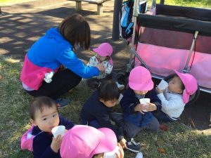 茂みの向こうに集まる友達を見つけ・・・みんなでお茶を飲んで帰りました。