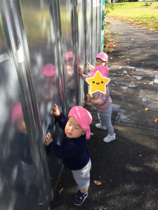 歩いてみるとキラキラした壁を見つけ、叩いてみるとなんだが面白い音が。