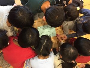 あか組に届けると、みんなで覗き込み「誰からだろう・・・」と。
