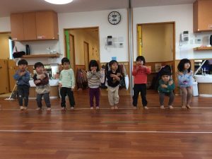 もうすぐ発表会のリハーサルがあるので、お客さんになってくれるお友だちの前で初めて練習の成果を披露しました。