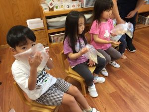 顔に袋を押し当て匂いを嗅いだりと、わくわくする様子がよく見えた