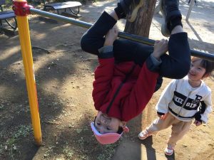 披露してくれました。「逆上がりも練習中なんだけど見る?」と