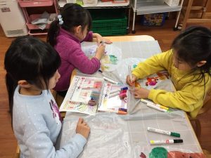 「凧って言葉と一緒だからタコを描く!」「大好きなキャラクターにしようかな~」とそれぞれ丁寧に絵を描きました。