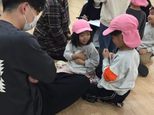 保育園まで専門学校の学生さんたちが迎えに来てくれ、ドキドキしながらも一緒に