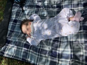 川沿にある広場でレジャーシートを敷いて、ぽかぽかと過ごしました。