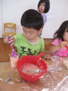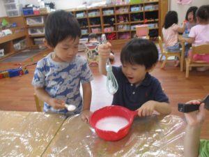 色をつけるとジュースに変身!夏祭りの時のことを思い出しますね