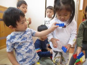 毎日、朝と夕方には他のクラスのお友だちと一緒に遊ぶ時間があります♪