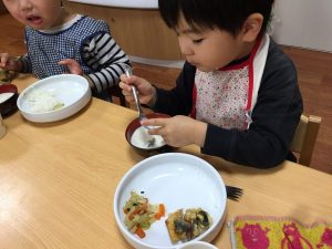 今日の給食は奈良県の郷土料理、あすか汁がでました。