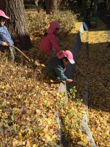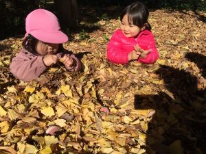 イチョウの葉で思いっきり遊び、大満足な子ども達でした。