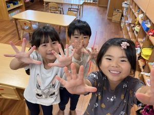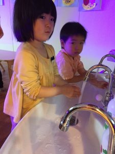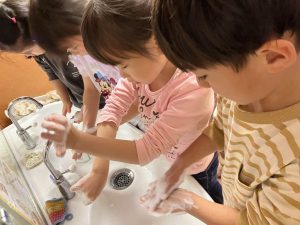 看護師が幼児クラスをまわり楽しく手洗いの仕方を再確認してくれました。