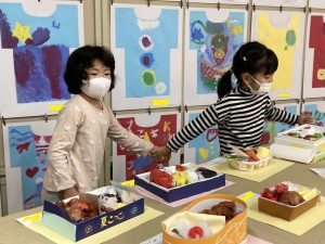 卒園生のお友達の作品を見つけると、「○○ちゃんのやつが、あったよー!」と、大きな声で教えてあげていました。立派な作品に、「小学生になったら、あんなにすごい物を作るんだね。」と口にしていた子も。ドキドキ・ワクワクの音楽会。お兄さん・お姉さんのカッコイイ姿を見て、小学生になることへの期待が、一気に膨らんだ子ども達でした。