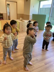 歌を歌ったり、先生との応答を楽しんでいると…、