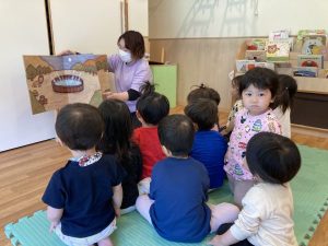 お誕生日のうたをみんなで歌い、特別な絵本が登場すると、興味津々でみんな見入っていましたよ。