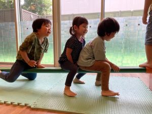 運動遊びでは平均台や梯子などのサーキットをしっかり順番を守って参加!