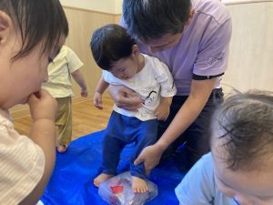 暑い夏の日も様々な感触遊びで楽しみながら暑さに負けず元気に過ごしている子ども達です!次はどんな感触遊びが出来るかな?楽しみです♪