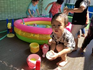 ボウリングの後は、大好きな水遊びをして、好きな玩具や水風船に夢中になり、たくさん濡れて遊ぶ子ども達でした♫