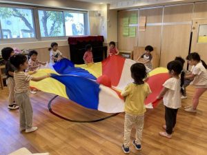 運動会に向けて、少しずつ練習しているパラバルーン。