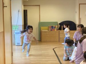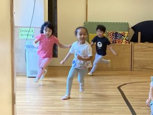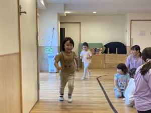 かけっこでは、昨年度よりも距離が長くなり、カーブを曲がります!