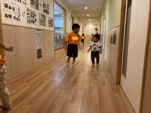 廊下で一緒に歩いてみたり、通せんぼをしてみたり。