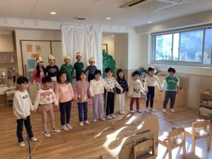 段々と行事が終わるたび、卒園が近づいてくる年長さん。ひとつひとつの行事を大切に、やりきれるよう保育者も全力でサポートしていきたいと思います。素敵な劇にしようね!