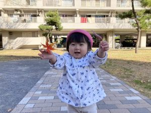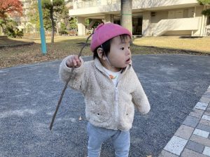 大きな枝を見つけた子や綺麗な落ち葉を見つけて見せてくれる姿がありました!