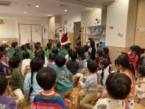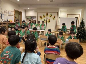 今日はみんながとっても楽しみにしているクリスマスイブです!私たちの保育園でもクリスマス会を開きました!あか組さんが素敵な歌や演奏を披露してくれたり、あわてんぼうのサンタクロースのパネルシアターを観たりして楽しく過ごしました。