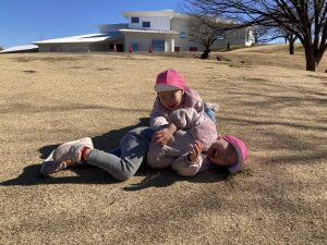 その後は広場で遊びました。坂を登ったり、お友達や保育者と追いかけっこを楽しんだりする姿が見られました。寝転がって坂をゴロゴロ下っていく遊びを楽しんでいる子もいましたよ!