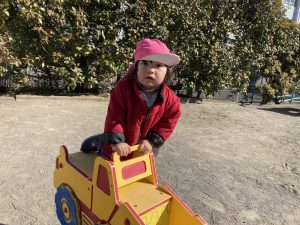 公園に着くとそれぞれ好きな遊びを始めます!「せんせ〜!きょうおすなあそべる〜?」と、お砂遊びのおもちゃがあるか確認してくれたり、「どんぐりみつけたよ!」と見せにきてくれたり、ボールを強く蹴って上手に返してくれたりしました。