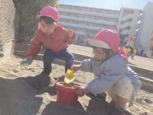 今日はポカポカ陽気のなか、元気いっぱいでお散歩に行きました!お友だちと手を繋いで歩くことにすっかり慣れて、歩きやすい様にペースを合わせてくれたり、何かを見つけては共有しながら楽しく歩いていますよ♪