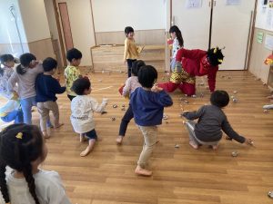 今日は節分です。保育園にも様々な鬼が来てみんなで豆まきをしました。