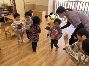集団遊びも楽しんでいます!最近初めてやったフルーツバスケット。最初は難しそうな表情を浮かべていた子もいましたが、慣れてくると「楽しい!」と大盛り上がりでしたよ!お友達や保育者の話をしっかりと聞いたり、自分で考えて動くなど、集中力や判断力、考える力など活動の中で様々な力を身につけています!