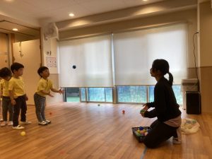 体操プログラムで行なっている、ボールを使った運動遊びを紹介します!