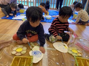 初めての造形プログラムは発見や楽しいことが盛りだくさんの時間でしたよ。自分だけのかぶができあがると嬉しそうにする子ども達でした♪