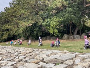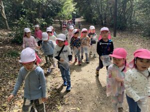 鬼ごっこや遊具で遊ぶことももちろん楽しいですが、散策も楽しんでいます。