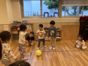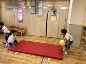 最後は去年の4.5歳クラスがやっていた”転がしドッチボール”