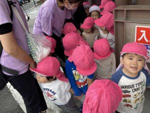 公園を後にして、次に向かう先は堀江陸橋です!「かいだんのぼる~!」と勇ましく向かったのですが、突然雨が降ってきてしまいました。雨に降られても何だかとっても楽しそうなみんな。「はやく保育園に帰ろう~!」と小走りで園まで戻ってきました。ハプニングも笑いに変えてしまうとってもたくましいわかば組さんでした!
