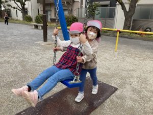 ブランコでは、「〇〇ちゃん!おして!」とお友達と押し合いっこ。優しく押してあげる姿にほっこり…♪